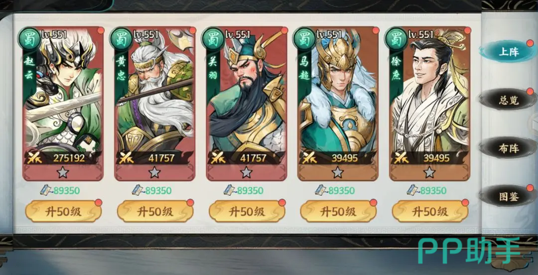 蜀国注重武将之间的羁绊联动,强调协同作战与组合技爆发。代表性人物有刘备、关羽、张飞、赵云、马超、黄忠以及诸葛亮。刘备负责队伍续航与辅助支持;关羽、张飞、赵云、马超、黄忠组成的“五虎上将”构成高额爆发输出体系;诸葛亮则提供大范围控制与策略支援。蜀国在中期战斗力达到巅峰,阵容完整时具备极强的清场能力,集控制、输出与坦度于一体,适合追求均衡发展的玩家。