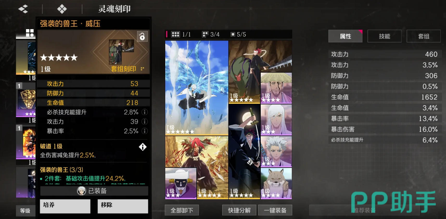 以黑崎一护为例,在游戏前期常因灵压积累不足导致输出疲软,战斗节奏偏慢。装备强袭的兽王后,其基础攻击力得到明显强化,短时间内爆发能力大幅提升,清怪效率显著提高。而斑目一角则依赖普攻与战技连段来叠加激扬状态,每次攻击的伤害基数提升后,连招的整体输出表现也随之增强,战斗流畅度更高。