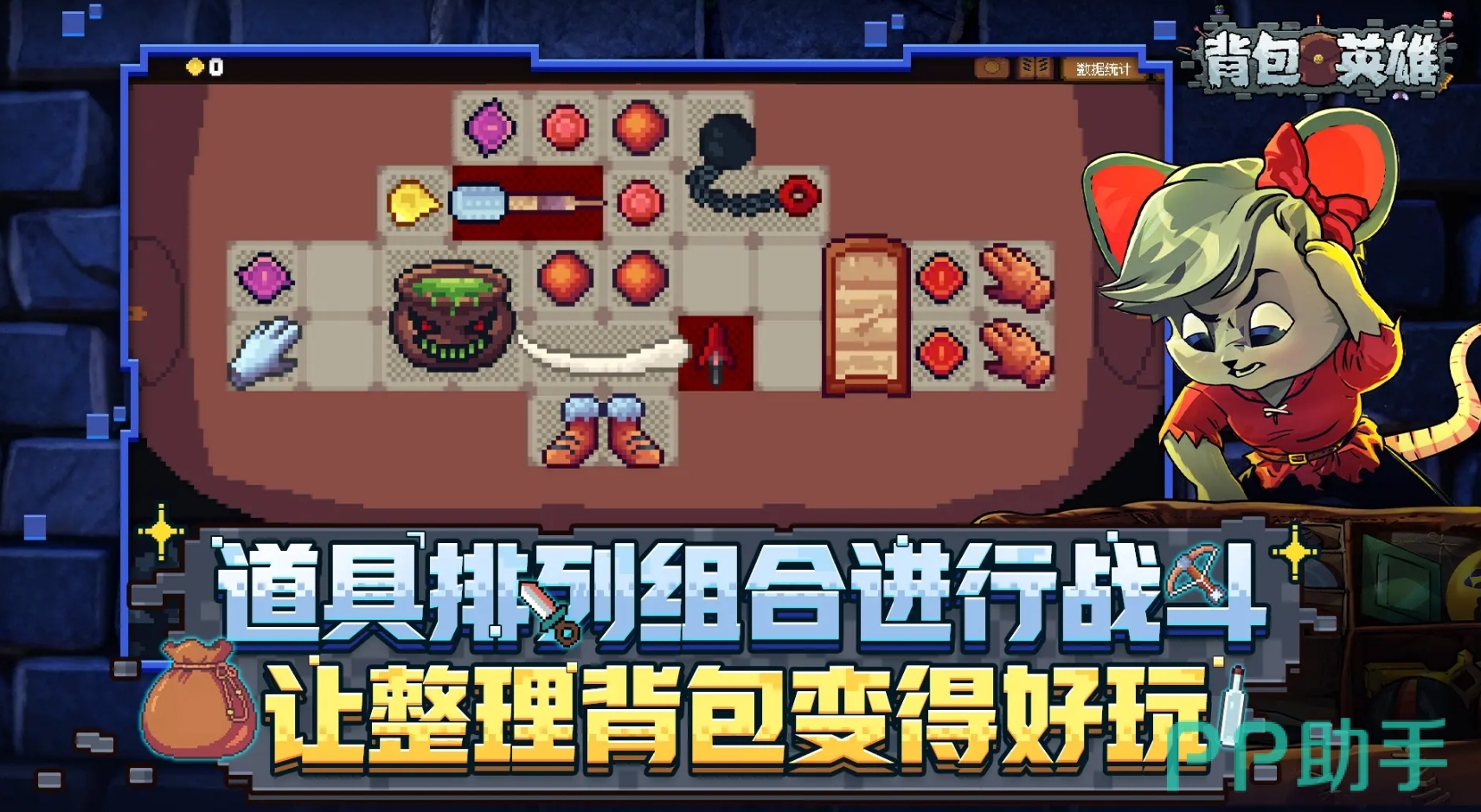 该游戏创新性地将背包管理作为核心战斗机制,玩家需在有限空间内合理摆放各类道具,以激活其最大效能。不同的排列组合会直接影响输出效率与技能联动,从而衍生出多种流派路线。策略性极强的空间利用设计,使得每一次战斗都充满变数,搭配随机掉落的装备系统,带来高度重玩价值和新鲜感。