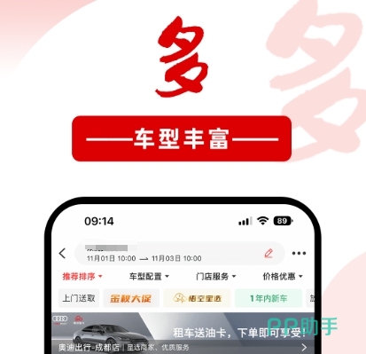 颇具特色的租车服务平台,以丰富的车型选择得到了许多用户认可,涵盖了经济、舒适型轿车、SUV以及商务车等多种不同类型,满足用户在各种场景下用车需求,无论是日常通勤、家庭出行还是商务接待等,都能在这里找到,服务网点分布上也十分广泛,让用户能得到不错的体验。