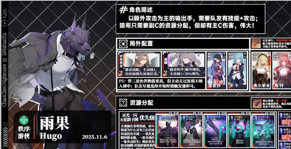 雨果的核心机制就是开始狩猎,队友在锁定攻击卡牌时,那么自然就会消耗层数,此时还可以触发一个额外的攻击。层数越高则意味着倍率也就越高,这一个机制就会直接决定配对的核心。在正确的搭配之后,就可以最大化雨果的追击伤害,而且目前能够符合的就是奶刀狼阵容。这个阵容中主要的角色就是雨果,还有奶位,以及德雷莎。这其实就是一个比较出色的阵容,为什么要如此搭配呢?先来说一下德雷莎主要的优点就在于不会占用牌库的空间。可以持续的打出大量的技能牌以及暗影匕首。