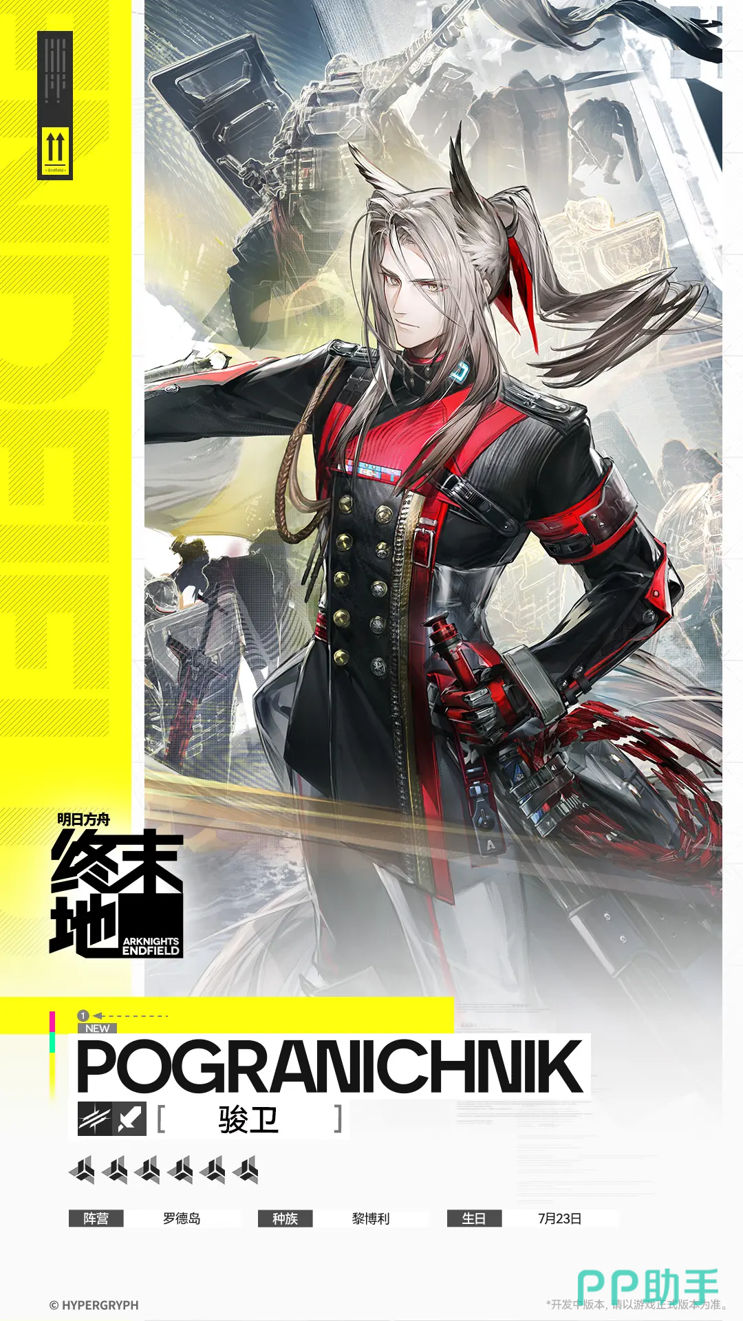 明日方舟终末地中的骏卫是一名来自罗德岛的男性干员,担任军事顾问一职,凭借扎实的战术素养与实战经验为终末地工业提供支援。他长期活跃于作战前线,具备出色的团队协作能力与指挥意识,因局势变化正式加入终末地阵营。这位外形硬朗、风格凌厉的新干员一经登场便引发广泛关注,其战斗表现究竟如何?一起来了解他的技能机制与实战定位。