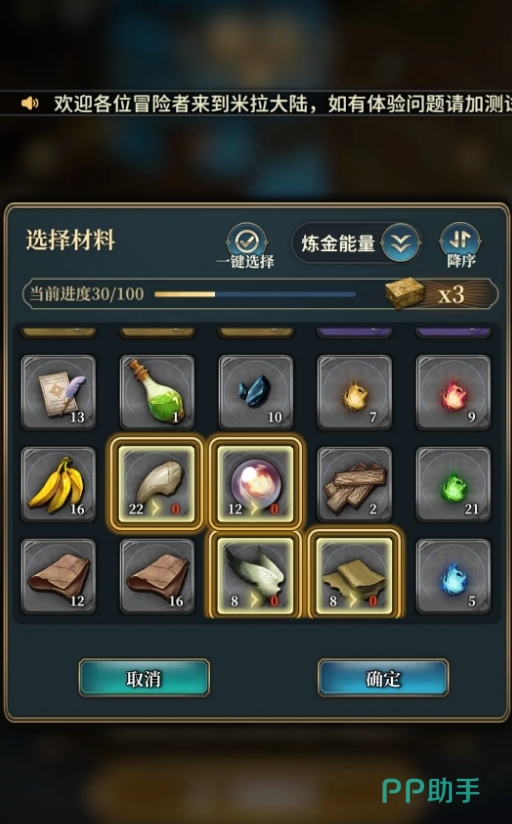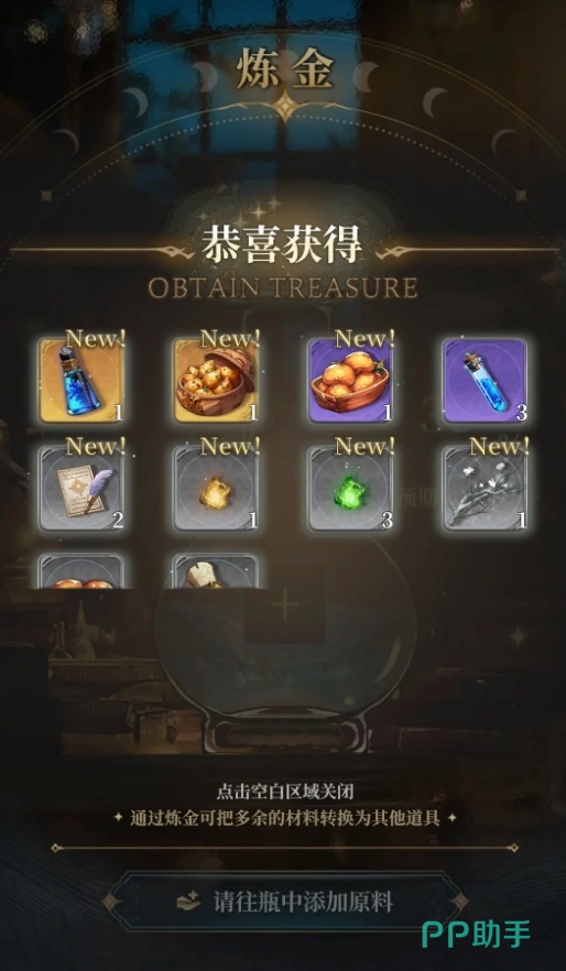 刷完材料,玩家可进入炼金功能的界面,在里边选择要消耗的材料进行炼金,每当炼金进度达到100时,就能通过此玩法获取一个物品,且炼金时可一次选择多个材料来炼制出多个物品,无需一个个进行炼制,因此用起来很方便。结束材料选取后,风之痕迹会弹出本次炼金的结果,让各位能看到自己获取了哪些物品。此外,精力药水的出货概率并不低,几乎只要炼制十多次就能出一瓶,一瓶能为玩家们恢复十点精力。而且该方法只消耗玩家的时间成本,不涉及任何与氪金相关的内容,所以零氪玩家也能使用该方法来获取精力药水。