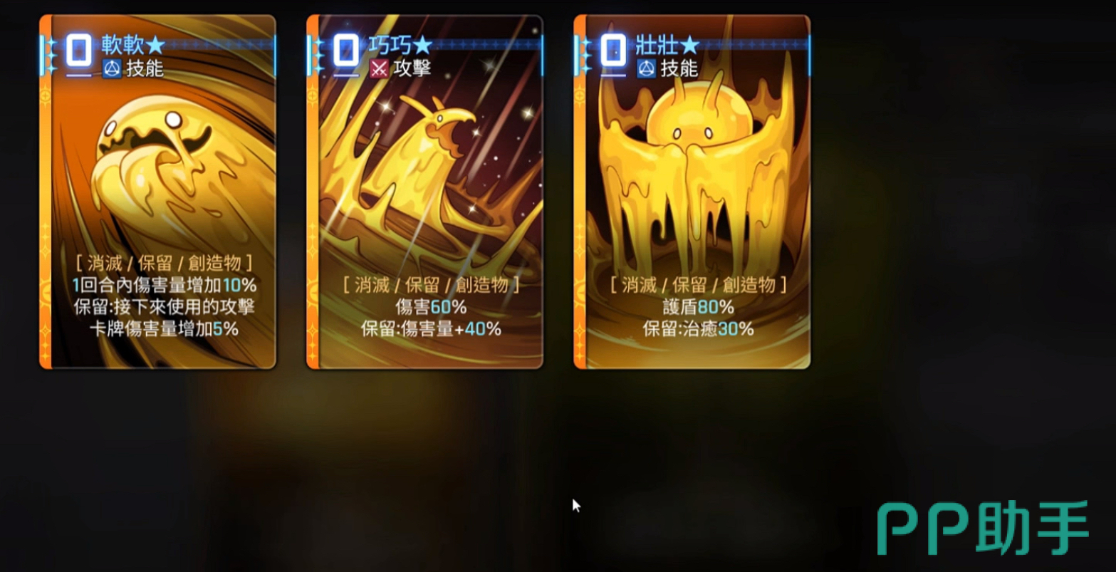 创造物壮壮,0费技能卡,可以提供80%的护盾,预留状态下可获得额外30%的治疗。
