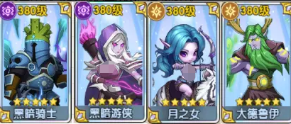 最后是光暗阵营。月之女是必须要培养的英雄,PK和关卡都非常强,专武最好能升到30,灵饰上推荐减伤类的。大德鲁伊也是光暗阵营中非常强的英雄,专武30会大大提升他的能力,灵饰最好越高越好。黑暗游侠在PK和试炼塔中也非常好用,专武30必不可少,灵饰上最好是攻击和减伤类的。冰霜女皇适合关卡使用,紫色品质就能发挥作用,不需要太多的属性加成。黑暗骑士在后期可以考虑养一个,关卡和PK中都能用到。痛苦术士和咆哮战士暂时不用考虑,前期实在没有太多用处。至于光暗的其他氪金英雄,如果你是喜欢收集的玩家,可以在后期慢慢抽,毕竟收集齐全也需要2-3年的时间。