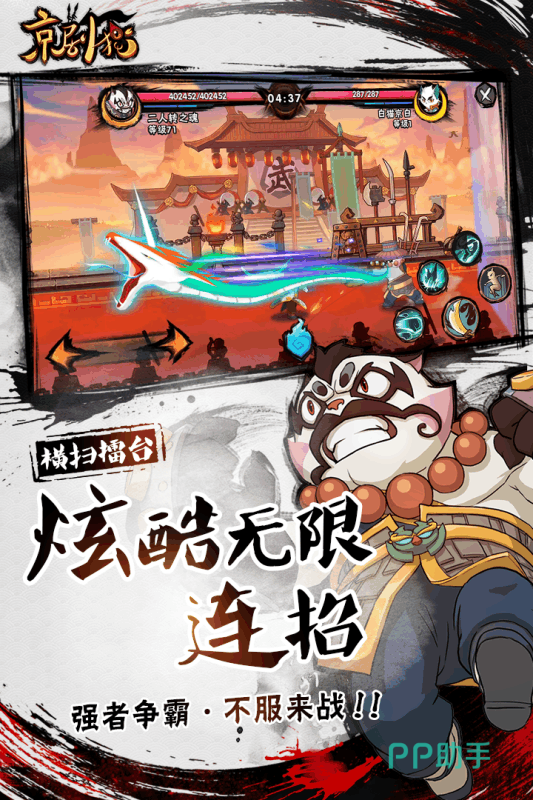 忠实还原动漫角色,形象卡通呆萌,玩法多样刺激。游戏设定有多线养成机制,玩家在游戏中可以对角色的等级进行提升,也可以在条件允许的状态之下将招式级别进行提升。在游戏中拥有20个章节的主线任务,根据玩家在主线任务中的发挥不同,可选择精英大师等不同的类别。拥有真实京剧音效,国潮魅力十足。