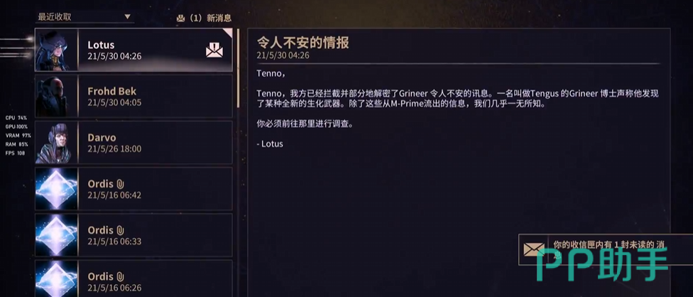 很多玩家不清楚如何开启“悲剧的开端”这一任务流程。实际上,该任务的触发条件非常明确:当你完成前期一系列引导任务并返回自己的飞船后,会发现邮箱中多出一封来自Lotus的新邮件,标题为“令人不安的情报”。阅读完这封情报内容后,系统便会自动激活任务线。此时按照提示前往指定位置与Lotus对话,即可正式接取并进入“悲剧的开端”的任务序列。