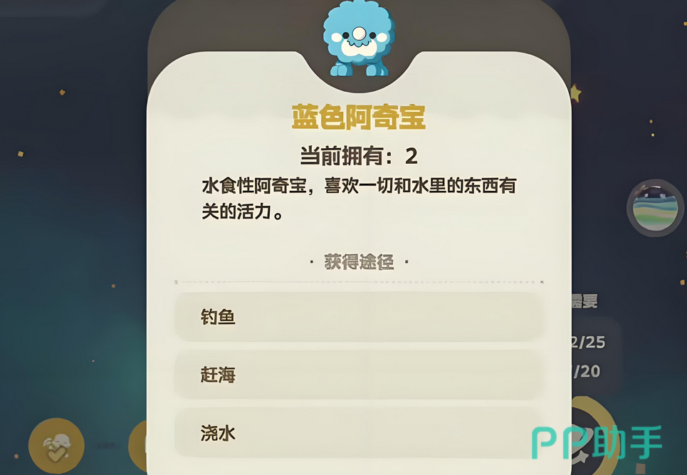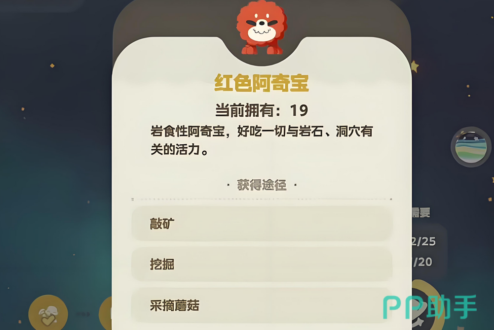首先是白色的阿奇宝,属于杂食性精灵,几乎可以在所有生活类活动中随机出现,无需特定条件即可获得。其次是红色阿奇宝,它对岩石类资源具有明显偏好,主要通过挖掘矿石、敲击矿脉或采集洞穴中的蘑菇来触发出现。第三种是蓝色阿奇宝,具备水属性特征,通常出现在与水域相关的活动中,例如垂钓、海边拾贝以及为作物浇水等场景。