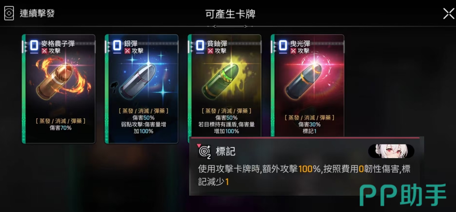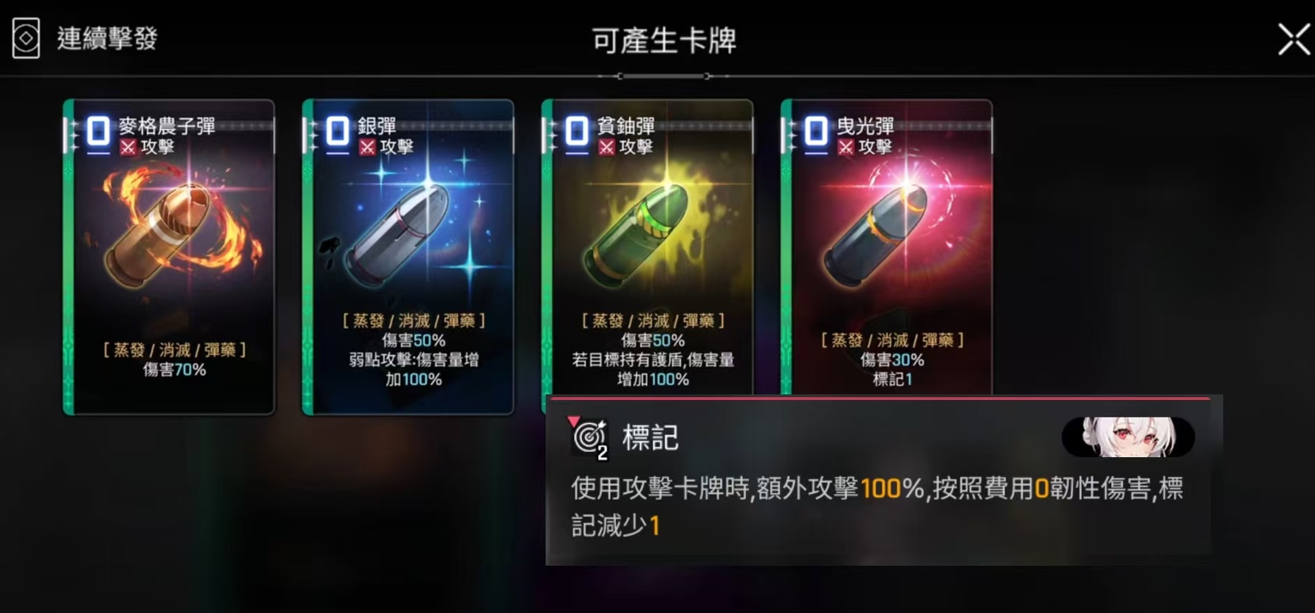 卢卡斯作为四星远程物理输出者,设定上为路克的兄弟,同样采用弹药系统构建输出节奏。他以群体伤害见长,具备良好的战场压制力和场景适配性,性价比突出。其主动技能“全弹发射”能对全体敌人造成可观伤害,结合技能sss可显著提升弹药输出效率。火焰斩击则用于补充范围伤害,清场速度较快。战斗中可通过多种弹药应对不同敌人类型,如闪光弹对护甲单位增伤,穿甲弹针对护盾目标,冷却弹可打断敌方技能节奏,五种弹药附带削弱、损坏等控制效果,战术灵活性强。但其输出极度依赖弹药供给,若缺乏扩容弹夹类基础卡维持节奏,易出现输出断档,在无发射类武器支持下伤害会大幅下降。