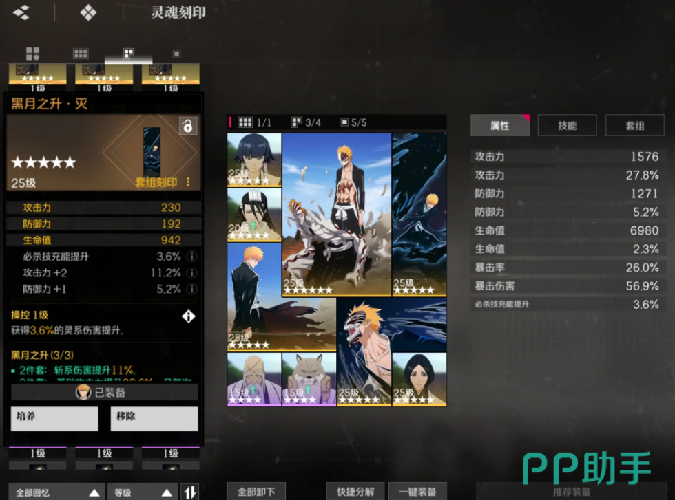在词条设计方面,刻印提供了丰富的被动技能选项以及套装激活效果。被动技能词条数量多达数十种,不同角色装备专属刻印后,有机会触发独特的被动能力。例如更木剑八的专属刻印可在其进入狂战之鬼形态时,大幅提升整套连招的输出效率,显著强化战场压制力。