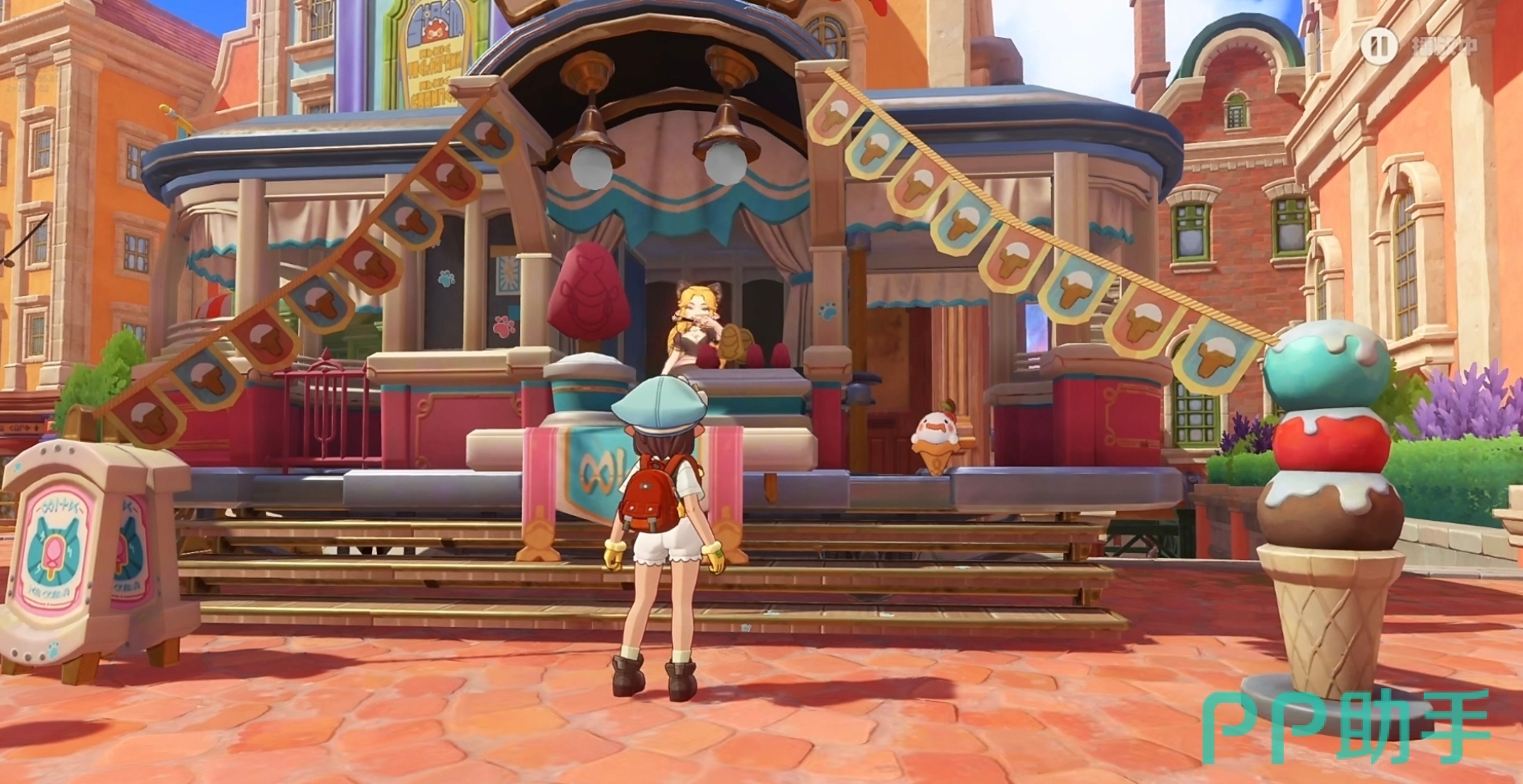 11、传送到彼得大道圆形广场,右转直行到底后再左转前行一段距离,可见一辆甜品售卖车,与摊主“甜品店长”对话并选择首个选项,即可召唤出隐藏精灵脆筒甜甜。