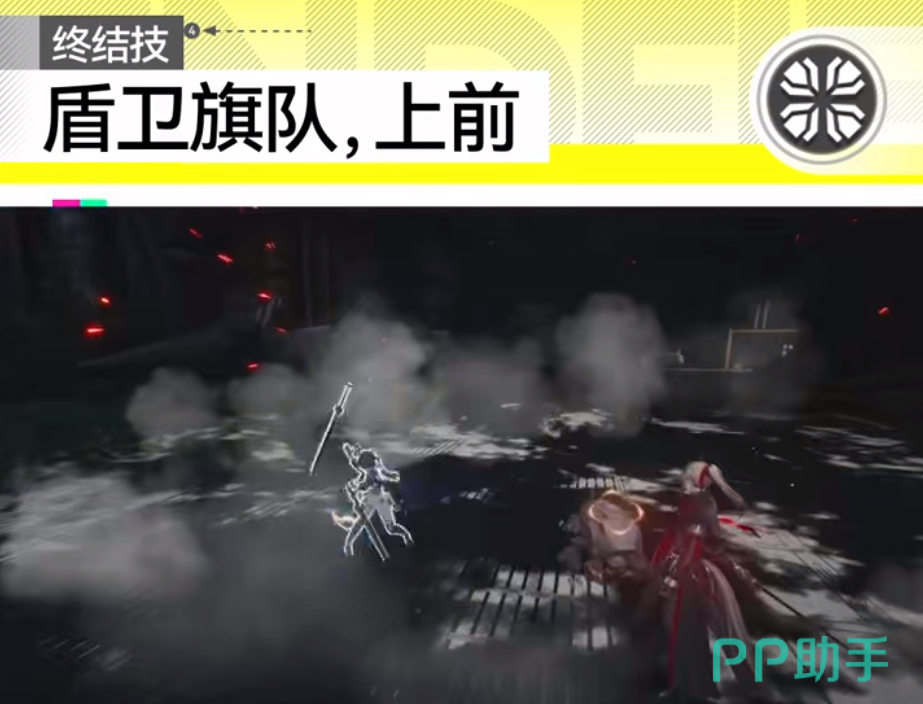 终结技盾卫旗队,上前!可以召唤盾卫和骏卫一起作战。当有敌人受到物理异常效果或者是骏卫的连携技能时就会触发盾卫的攻击状态,给敌人造成一定的伤害值,且恢复一定的技力。