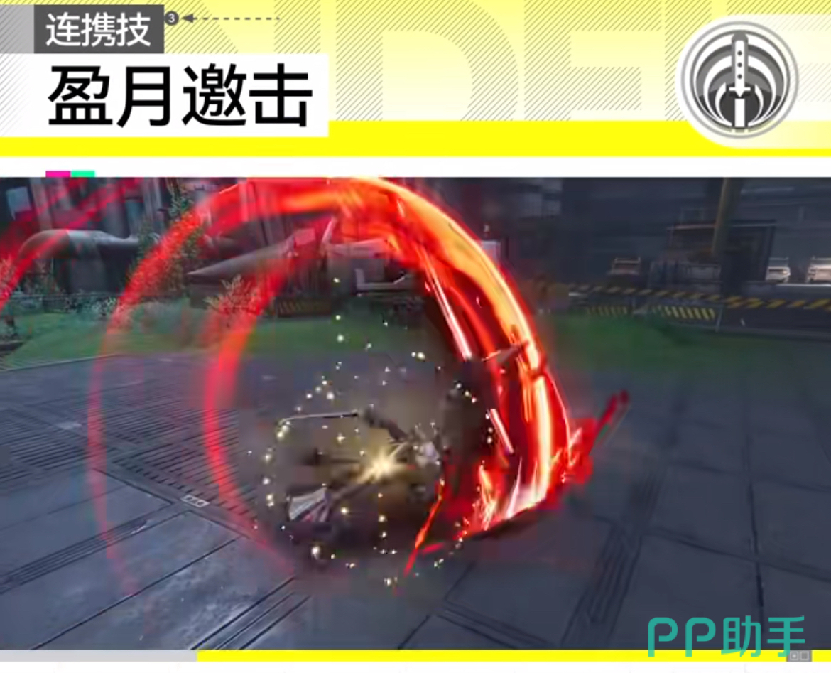 连携技盈月邀击,当敌人被物理效果消耗破防层数的时候就可以触发该技能。根据对方消耗的破防层数进行相同次数的斩击效果,给对方造成一定的伤害值,同时恢复一定的技力。
