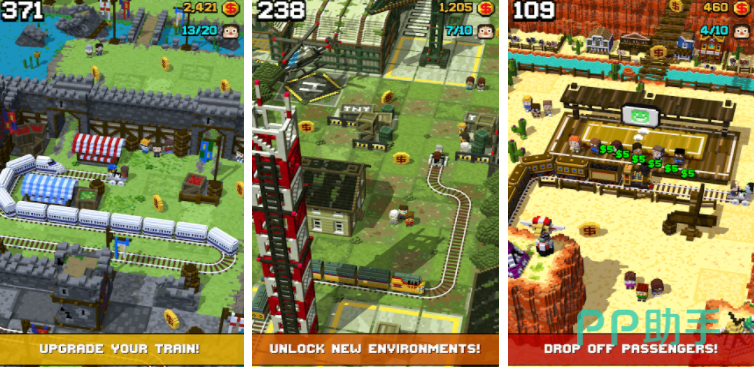 该游戏采用独特的3D像素美术风格,玩家将在废墟遍布的铁路线上展开救援与运输任务。部分路段因年久失修而损毁,需在列车抵达前完成修复工作。每关都有明确的乘客运送目标,成功完成后可获得金币用于升级机车性能,提升后续任务的完成效率。