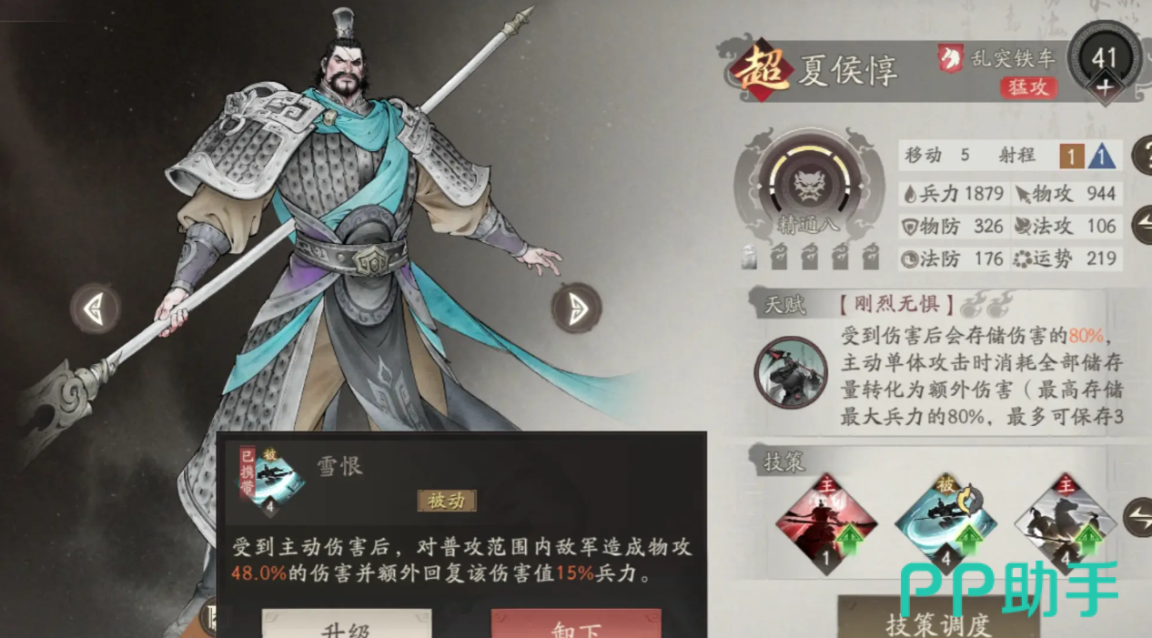 夏侯惇则是一位以反伤为核心的骑兵单位,擅长在受到攻击时进行强力反击,即使处于被动出手位置也能打出显著效果。其被动技能可反弹30%所受伤害,并生成护盾保护自身,在持续交战中生存能力极强。