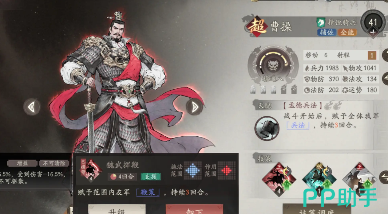 曹操作为全能型统帅角色,不仅拥有可观的伤害输出,还能为全队提供关键增益。其核心机制在于,可使团队整体基础攻击提升15%,进入第三阶段后额外赋予队伍10%的减伤效果。此外,主将与曹操协同作战时,有30%概率触发连击,大幅提升输出频率和压制力。