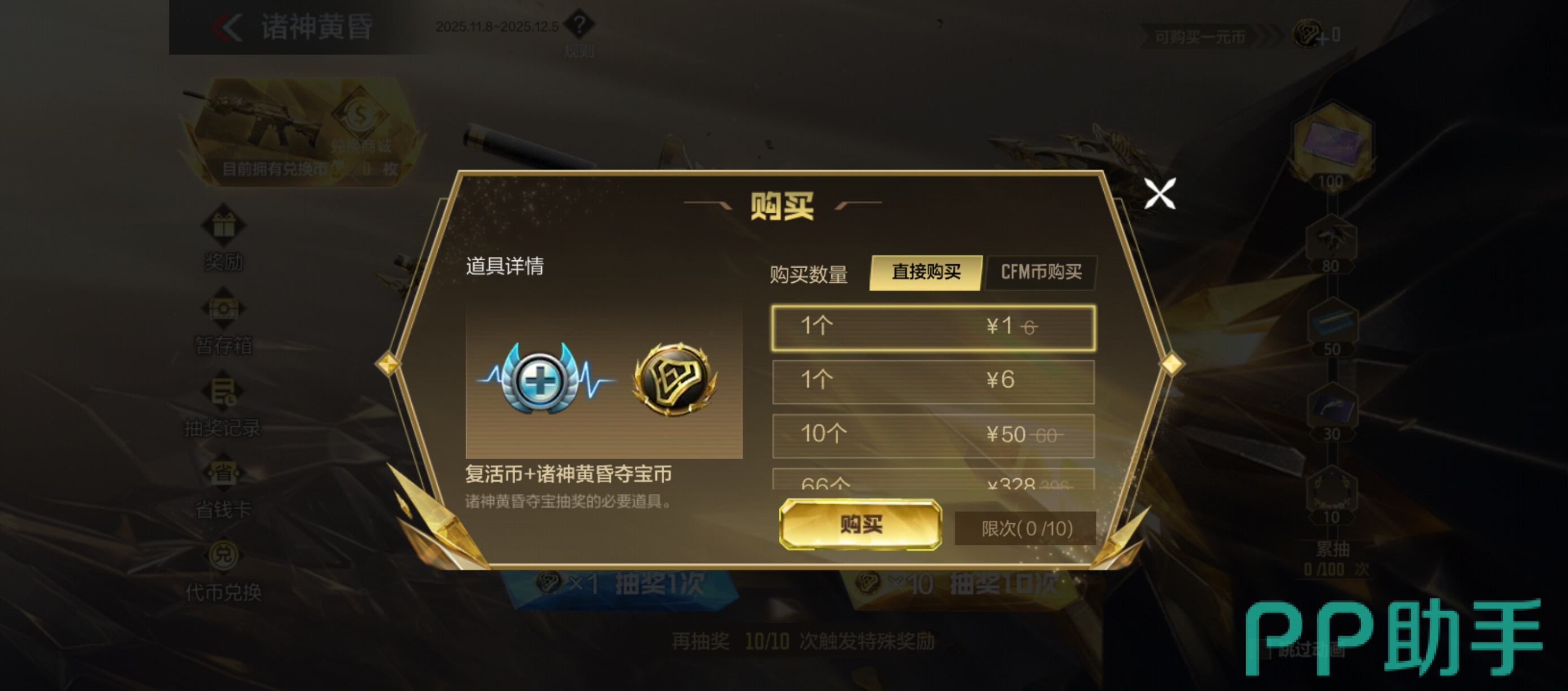 玩家在参加诸神黄昏夺宝的时候,需要了解,他其实通过抽奖的方式开展,而在抽奖的时候需要运用到代币,如果玩家单抽的话价格是6元,10连抽的价格是50元,目前部分商城还直接推出了一元购代币的优惠,所以玩家在选择抽奖之前,自己要决定是否要购买代币,毕竟在游戏当中,玩家其实是能够通过完成对应的任务来免费的获取代币。举个简单的例子,比如CFM币商城的20连抽福利,这样的话玩家其实就有机会低成本地获取代币。