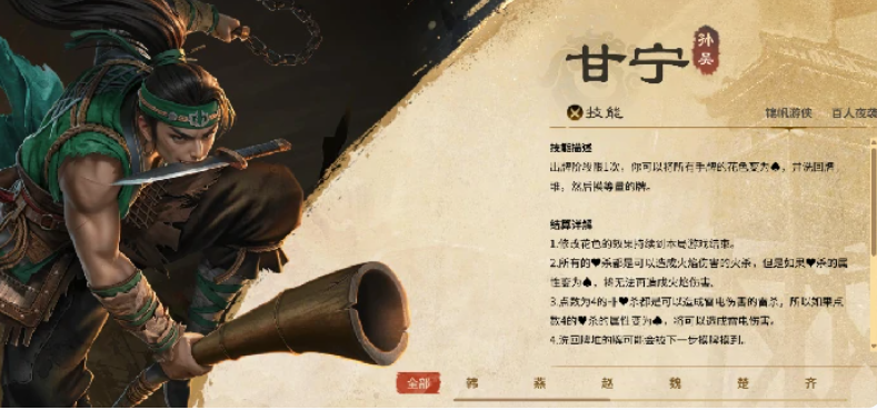 后期通过持续的资源剥夺来削弱对面,中期的时候如果大家手中有强力的装备卡牌,或者是有一些爆发性的技能也可以用起来,但是一定要注意这样的拆迁队里面控制手段是最主要的手牌,如果在对面比较缺少的情况下,大家就可以加大拆除力度,到了后期阶段,甘宁在其中的强度就会得到足够的提升,而且强化版的技能进行里面可以更快清空敌人手中的资源效果,搭配了后期的刘封、大乔技能效果维度之后,这样的压制力就可以保证对面体力没有办法直接反扑。