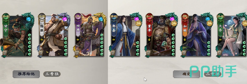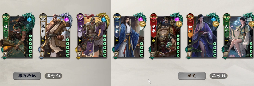 此外,审配放在这样的拆迁队里面就是辅助,防杀效果比较强,还能参与前期的拆除行动,搭配刘封的效果,让整场的阵容控场能力大大增强,加入了审配在这个阵容里面,大家可以保证自己在掠取对面的手牌在概率上面得到足够的概率提升,而且可以让对手达到一个前面受制,后面无手牌可出的一个情况,实战里面大家要把甘宁跟大乔的效果放在首位,因为此时他们俩的双排管理才能够达到强攻的能力。