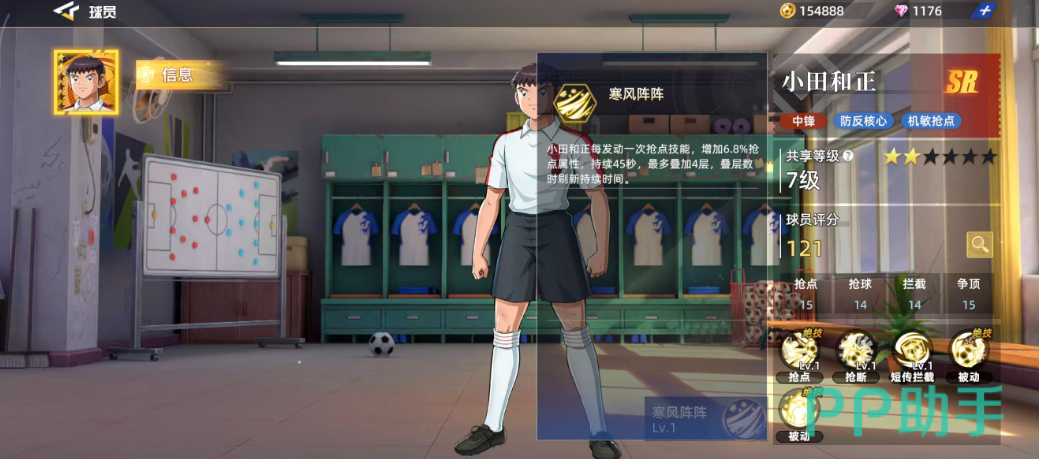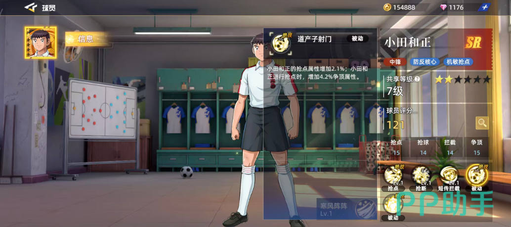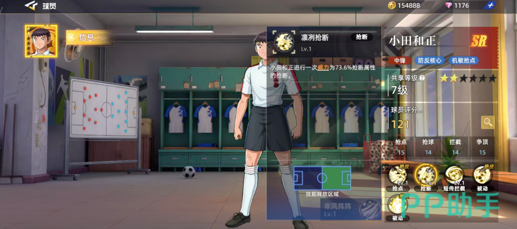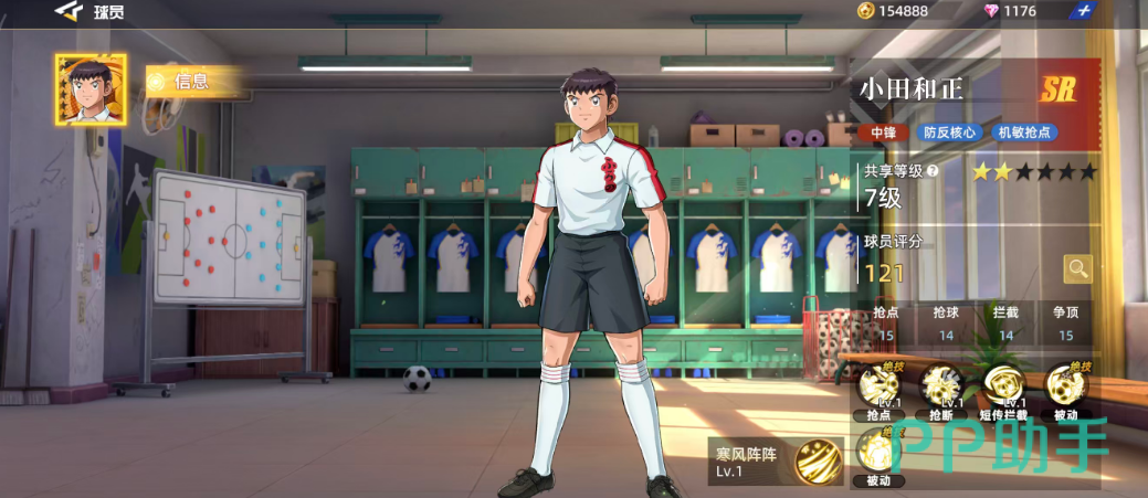 游戏中小田和正是初期可用的球员,也是SR品质当中定位比较明确的一位球员,他属于中锋定位当中的一员,技能效果非常适合用来作为防反核心使用,且总体的效果来看也是比较机敏的,后期利用技能优势可以作为抢点的专用球员用,基础的球员评分是121,在SR品质球员当中不算很出色,但是这个得分也不算低了,其中的抢点15、抢球14、拦截14、争顶15,可以看出来这几个方面的能力他还是比较均衡的,而在六维图当中的抢球是比较弱势的,只有14分值,所以避免抢球的话,其他方面的能力小田和正还是比较符合SR品质球员的能力。