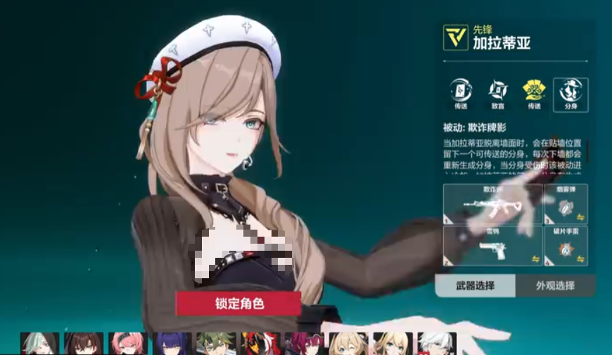 结合觉醒技使用后,加拉蒂亚能够实现隐身并提升移动速度,显著增强战术灵活性。在防守阶段,她可通过投掷分身建立远程枪线压制;遭遇危机时,则能迅速传送到任意分身位置完成隐蔽撤离,实现高效脱战。