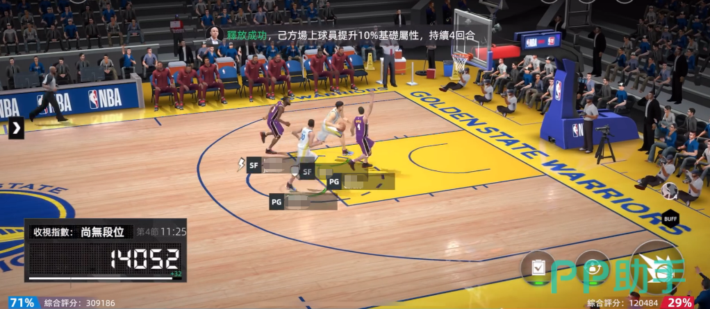 技能方面,“飞天遁地”是其关键技之一。释放后下一次出手必定以上篮形式完成,并激活“上篮提升”效果,不仅大幅提高命中率,还能削弱对手防守属性。结合其出色的突破性能,非常适合用于快速切入内线制造杀伤,尤其在反击推进过程中展现出极高的终结效率。