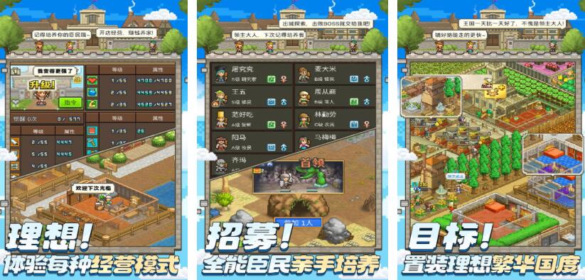 在《王都创世物语》中,玩家将从一片荒地开始,逐步建立起繁荣的王国。作为国家的统治者,你需要规划城市建设、发展经济体系,并通过任务推进剧情发展,深入了解世界背景。探索过程中还会遭遇敌对势力,需指挥军队进行战斗。尽管画面为像素风格,但融合经营、冒险与RPG元素的复合玩法,让整体体验更加立体且富有策略性。