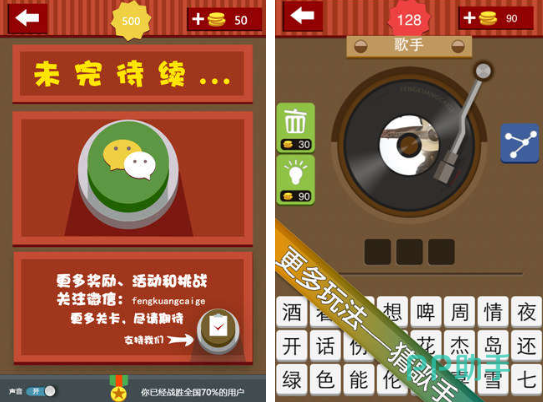 这款游戏巧妙融合了音效识别与文字解谜机制,玩家需根据播放的歌曲前奏,从提供的汉字中选择并拼出正确歌名。内置金币系统可用于获取提示,帮助新手顺利度过难关。曲库涵盖广泛,既有当下流行热曲,也有经典怀旧老歌,适合各个年龄段的用户参与体验。