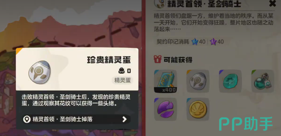 成功击败圣剑骑士后,将获得丰厚奖励。其中包括需要消耗40个契约印记才能领取的宝箱,内含大量资源。同时玩家还可获得400点魔法经验,助力世界魔法等级的提升。最为珍贵的是掉落的精灵蛋,可用于孵化出圣剑骑士精灵,是收藏与战力双重价值的稀有物品。