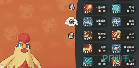 在技能配置方面,常见的搭配包括炎息、落星、烈焰风暴以及山火。这些技能消耗较低,释放流畅,适合在多轮战斗中频繁使用。由于晕晕鸡的物攻与魔攻数值接近,建议在构建技能组合时兼顾物理与魔法类型,以发挥其全面输出的优势。