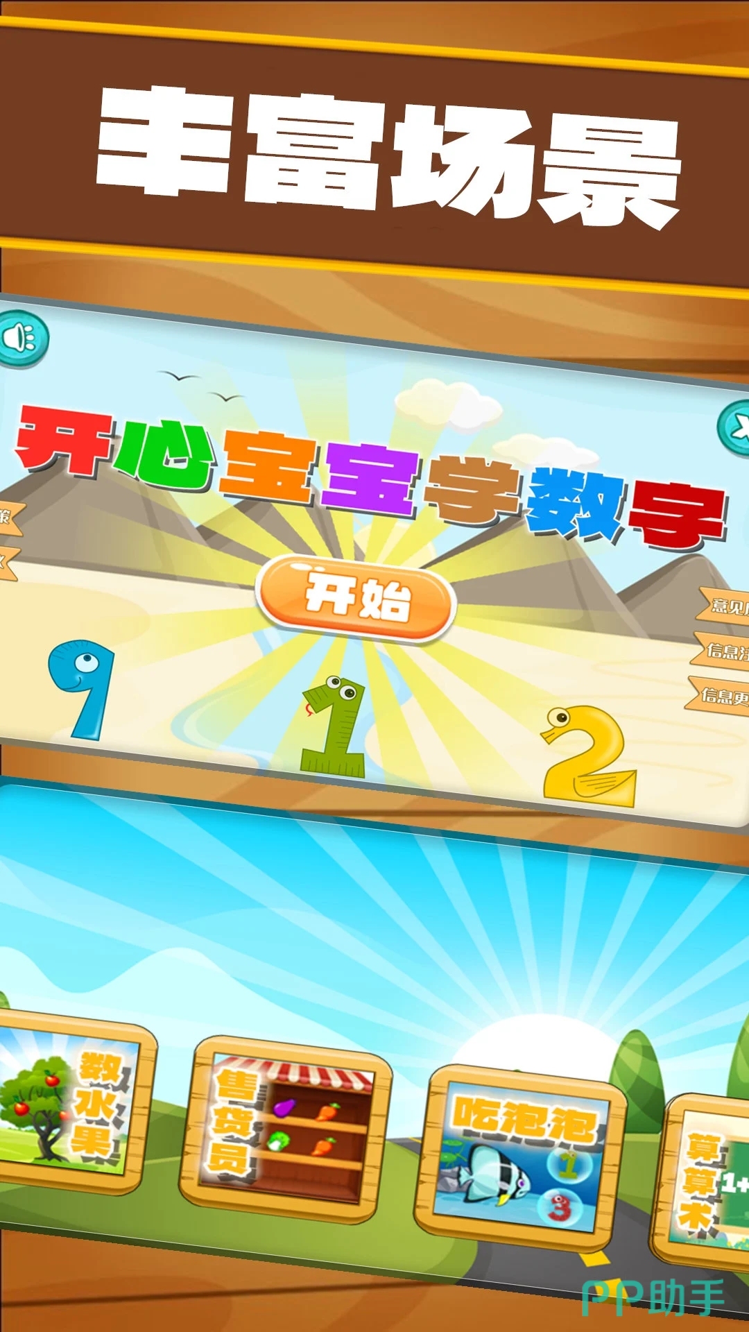 《开心宝宝学数字》数学能力的培养可以说是孩子们成长中最重要的一个阶段,这部作品采用了数学与各种异趣横生的小游戏双重结合的形式,让孩子们真正的去掌握数学,了解其4种数学公式之间的差异性,在游戏里进行串糖葫芦,明白了数字的量化关系,还内置了在线的练习模板,家长可以出题让孩子们在线解答。