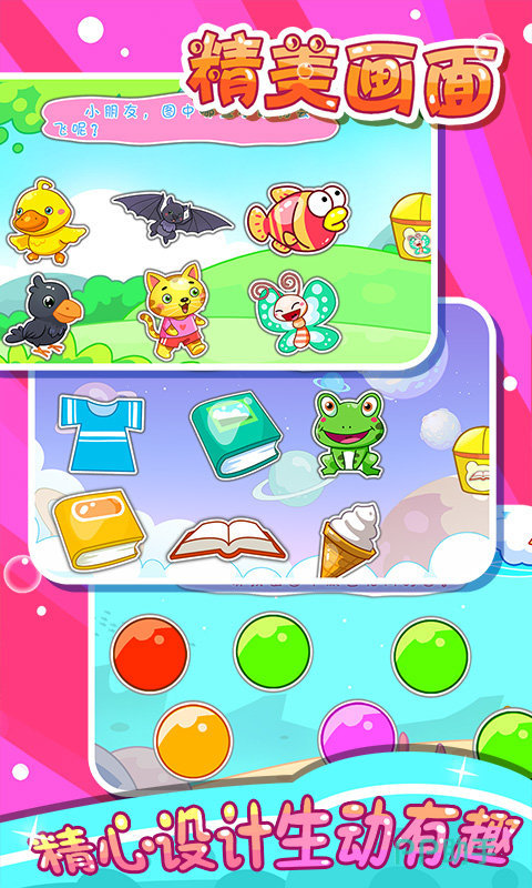 《儿童能力教育》观察力、反应能力辨别色彩的能力等等,游戏可以说全面围绕着孩子们的能力教育,进行了精彩绝伦面面俱到的设计,添加了比如井字棋、打地鼠等等,多样童趣十足的儿童小游戏,同时还有奖杯和称号为奖品,驱动着孩子们积极踊跃地投入其中,还在消除游戏中,把不重复的动物以及色彩进行了添加。