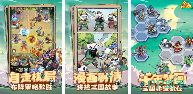 这是一款竖屏呈现的卡牌策略竞技类作品,创新地将动物形象与三国题材相结合。游戏采用自走棋战斗模式,搭配六边形格子战场,增强战术部署的深度。所有角色均为动物拟人化设计,配合漫画式剧情推进,展现别具一格的叙事风格。强调策略布阵与阵容搭配,适合喜爱动脑博弈的玩家体验。