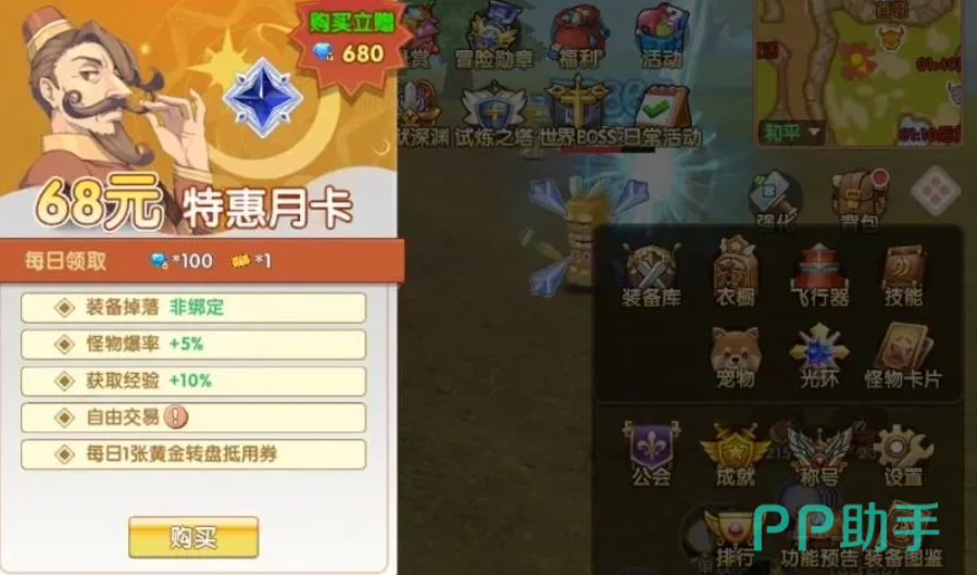 对于刚进入游戏的新手而言,了解交易系统是前期发展的关键。游戏中设有拍卖行与直接交易两种模式,构建了完整的流通体系。若计划进行充值,推荐优先考虑68元月卡,该选项不仅能解锁装备继承和自由交易功能,还能持续提升装备掉落概率,并每日领取固定数量的钻石,性价比极高,深受搬砖玩家青睐。