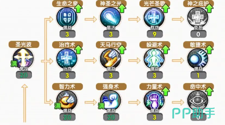 若专精魔棒流,治疗能力为核心追求目标。首先需重点升级治疗术,该技能拥有184%的基础加成并额外附加1145点治疗量,是可靠的保命手段。与此同时,光芒圣歌同样不可忽视,其群体治疗效果可持续3秒,有效应对集中伤害。此外,力量术可为全队带来39%的力量增益,属于开战必备BUFF,建议将其加点投入控制在主要治疗技能的一半左右即可。