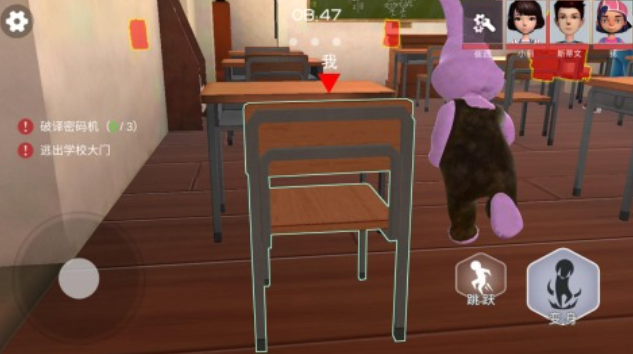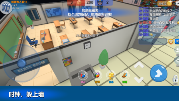 这是一款采用1V3对抗模式的非对称竞技类躲藏游戏,三位躲藏者需在限定场景中利用变身能力伪装成环境中的普通物品,而抓捕方则身穿趣味动物服饰展开搜捕。游戏支持多种地图切换,包括校园、庭院等主题空间,玩家可通过灵活走位与策略性伪装延长生存时间,整体节奏紧凑,互动性强,极具娱乐性。