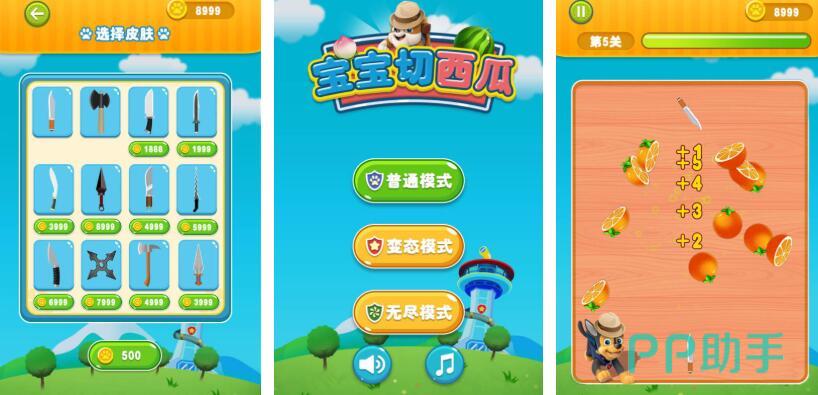《宝宝切西瓜》是一款专为儿童设计的切水果小游戏,操作方式简单直观,通过滑动屏幕即可切割从空中掉落的西瓜及其他水果。随着切割数量增加,积分也会不断累积。游戏提供普通模式、变态模式和无尽模式三种选择,其中变态模式节奏更快,并会混入炸弹等干扰道具,考验玩家反应速度与专注力,增添更多挑战乐趣。