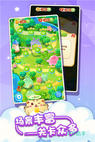 在一个五彩斑斓的泡泡世界中展开趣味挑战,《开心泡泡猫》保留了传统泡泡龙的核心规则,并加入了限定时间、Boss战、救援任务等多元模式。数百个关卡分布在不同主题区域,涵盖城堡探险、动物救助等内容。特别引入猫咪宠物系统,玩家可通过营救小猫获得专属技能与道具,提升通关效率,增强互动体验。