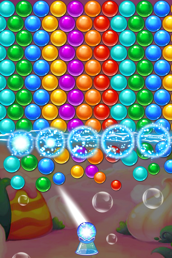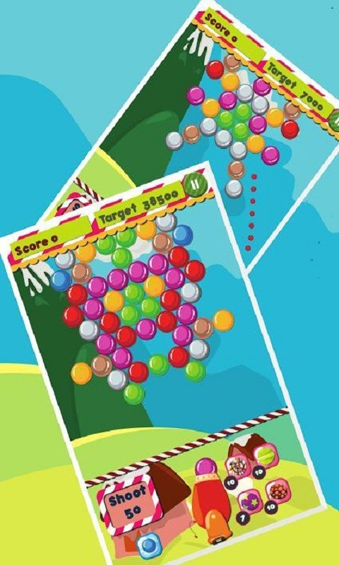 善用反弹原理能更有效地击破高处密集泡泡。本作以糖果为主题,整体色调甜美明亮,营造出梦幻般的甜蜜氛围。玩家将发射缤纷糖果色泡泡,在五光十色的世界中感受轻松愉快的心情。卡通风格清新讨喜,带领玩家进入一个充满童趣的糖果王国。