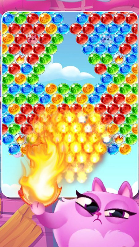 玩家需要操控发射装置,发射彩色泡泡,连接三个及以上同色泡泡完成消除,目标是清空屏幕上的所有泡泡。游戏内置多种功能道具和特殊泡泡类型,考验玩家的判断力与策略安排。整体画风走萌系路线,以猫咪形象构建梦幻般的泡泡世界,操作直观流畅,适合碎片时间娱乐游玩。