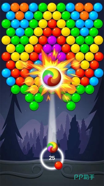 本作画面简洁但视觉冲击力强,配色鲜艳活泼,音效轻松愉悦,适合休闲放松。玩家控制发射器瞄准并射出彩色泡泡,命中同色群组即可触发消除。随着关卡推进难度递增,必须及时清理堆积的泡泡以防失败。除基础发射外,还可集中剩余泡泡进行高效清除,合理运用技巧才能顺利通关。