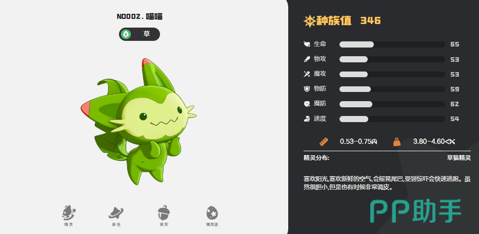 第二个推荐的是喵喵,属于草属性精灵,定位偏向于半肉生存型角色。该精灵的最大特点是具备自我回复能力,其技能可在造成伤害的同时恢复自身生命值,回复量基于最大生命值的15%进行计算。因此,只要基础血量足够高,回复效果就会更加显著。