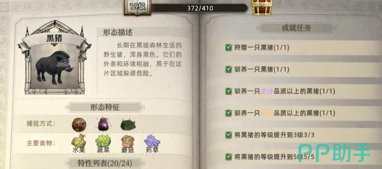 黑猪通体漆黑,常年栖息于黑暗森林,凭借环境掩护有效规避威胁。其特有能力“碎木冲撞”可用于快速收集木材资源,极大提升了前期建设与发展速度,是打造据点时的理想助手。