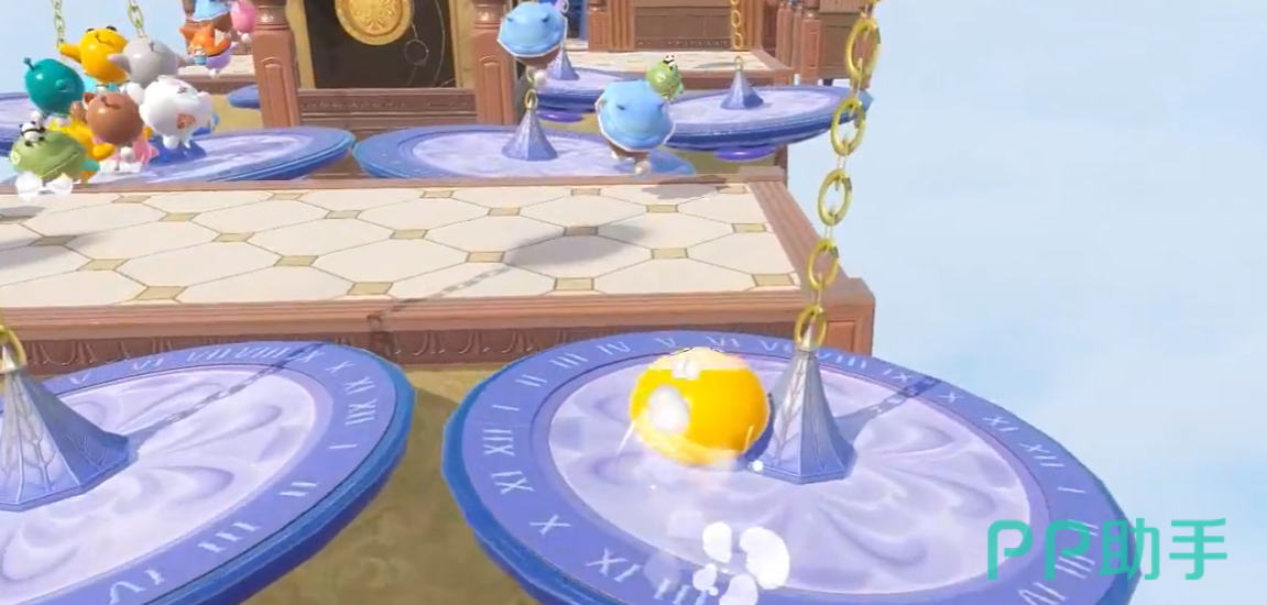 以“卜算研究所”为例,整体场景融合了占卜与魔法风格,营造出梦幻般的探险氛围。地图内设有多个神秘传送门,玩家穿过即可瞬移至下一区域,巧妙利用可大幅提升通关效率。“命运的陀螺”则设置了大量高速旋转并不断位移的陀螺装置,玩家需精准把握跳跃时机,借助其动能实现更高飞跃,抢占先机抵达终点。