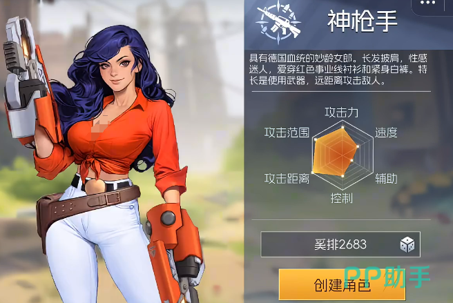 神枪手即游戏中的女主角汉娜,她以一头醒目的紫色大波浪长发和亮眼的红色上衣成为战场上的焦点人物。与普通近战角色不同,汉娜擅长使用多种枪械进行远程打击,操作灵活且反应迅速。她的移动速度是全角色中最快的,配合流畅的操作手感,能够在战斗中实现快速位移,保持与敌人的安全距离。同时,她还能在攻击时击飞对手,并利用闪避机制有效规避敌方技能,兼具输出与生存能力。