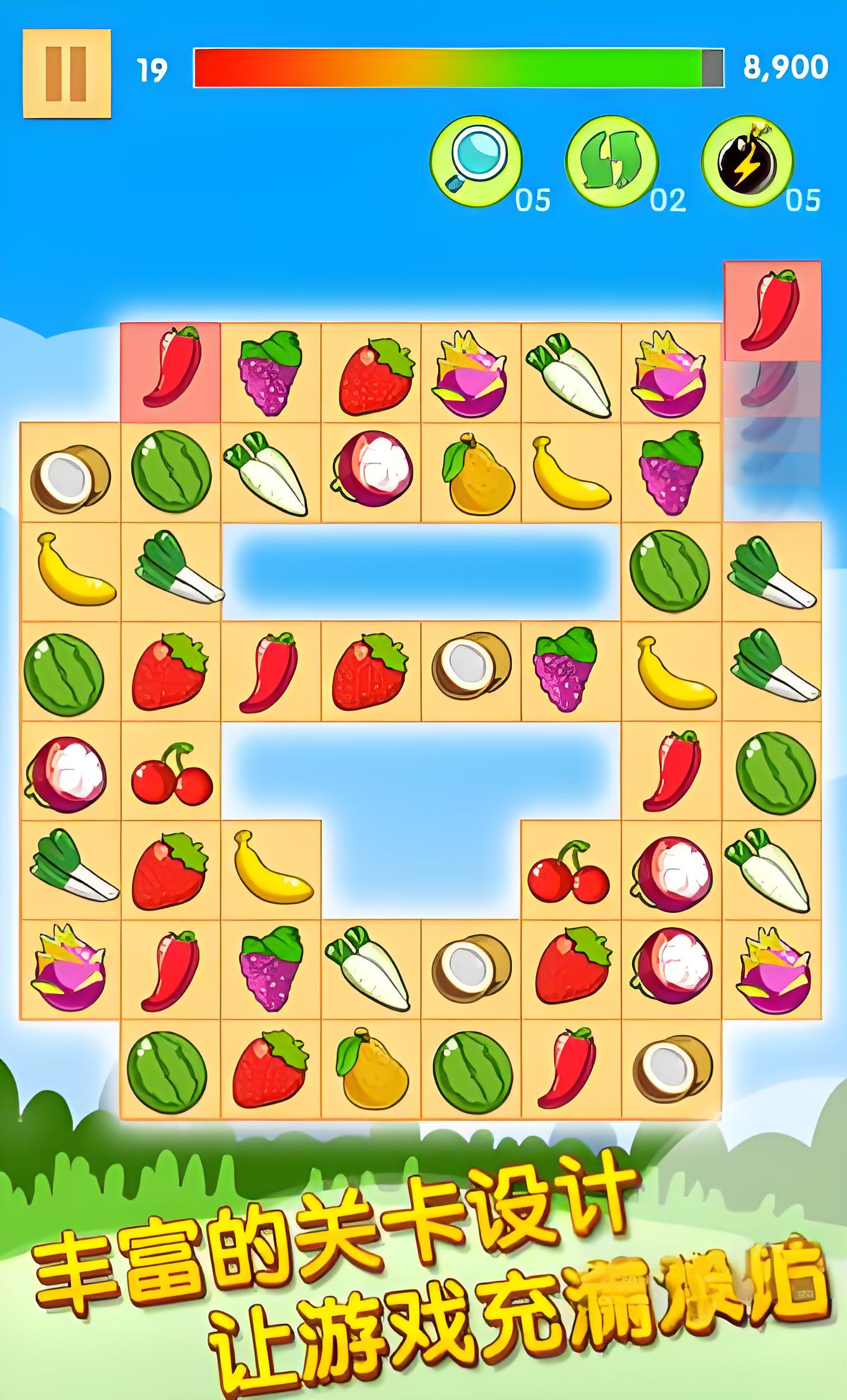 蔬菜连连看是一款以果蔬元素为核心的休闲消除游戏。它在传统连连看基础上加入了创新机制,使整体玩法更加丰富有趣。游戏支持多种模式切换,界面布局清晰直观,操作响应流畅顺滑。智能提示系统的加入,能够在玩家陷入僵局时提供有效帮助,极大增强了游戏的可玩性和用户体验感。