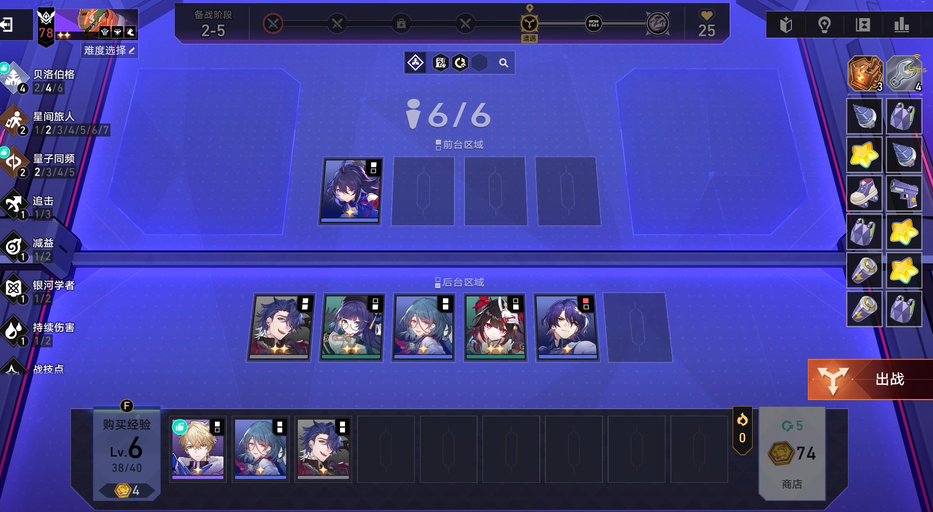 货币战争在模式上与自走棋有些类似,需要玩家们进行三个位面的战斗,每个位面都有不同的关卡组成,若是在关卡中挑战失败,会扣除一定生命值继续闯关,直至生命值被扣完。开局时游戏会给予玩家四名角色和一些基础物资,玩家可将角色放置在空白格里令他们上场战斗,也能通过给予他们装备、进行升星、组成羁绊等形式,来强化他们的战斗能力。每次成功完成关卡的挑战,各位还能拿到一定数量的货币,用于在商店里购买角色完善自己的阵容或刷新商店。此外,等级越高,玩家越容易在商店里刷出高费角色,能放上阵的角色数量也就越多。