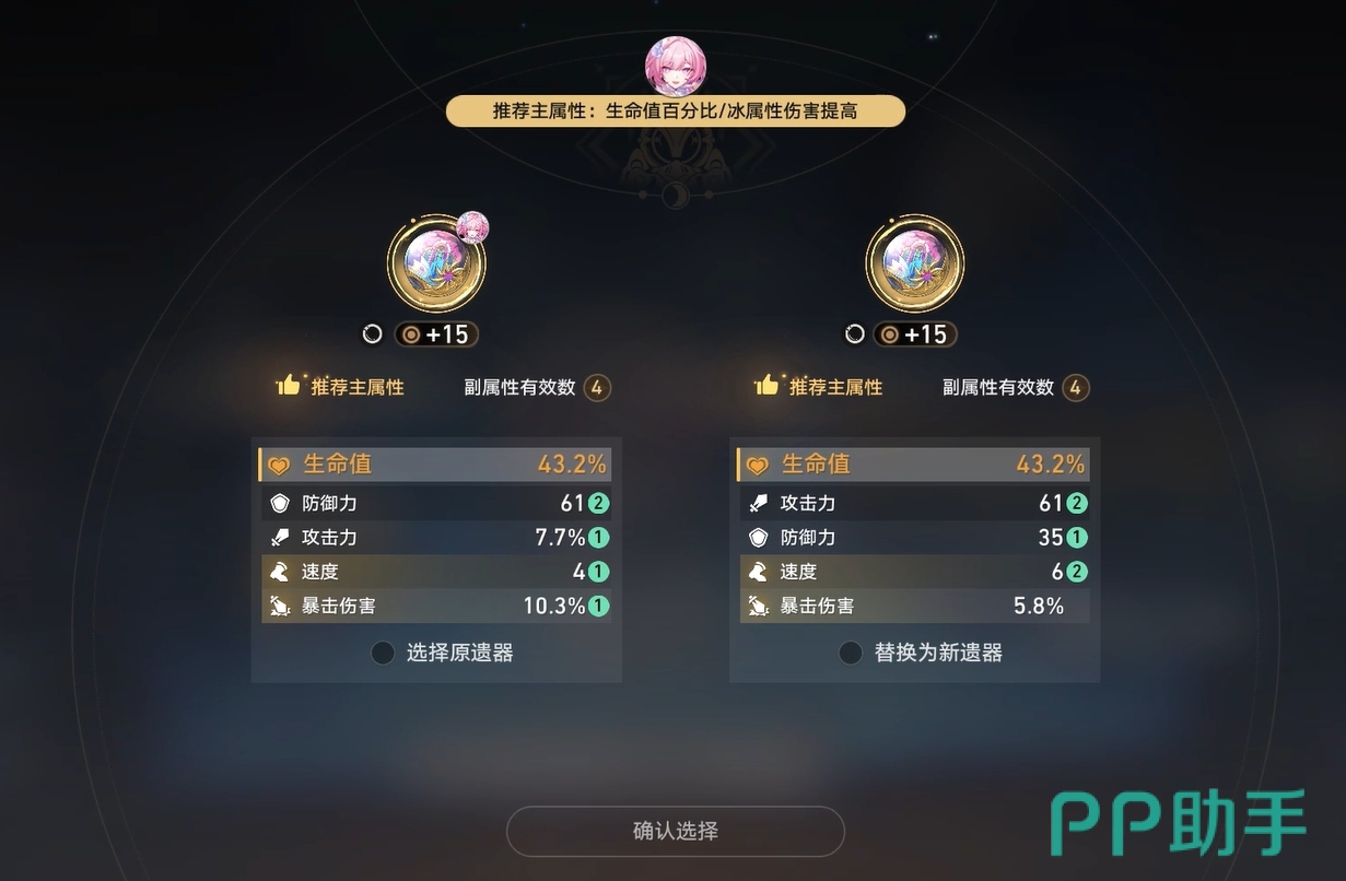 若玩家们在150张卡消耗完之前就已经集齐了套装,可继续抽取新的遗器部件,游戏也会在完成重复抽取同部件遗器时,给出新旧遗器的对比,并为玩家们贴心地标注遗器的主词条是否符合所选定角色的需求,以及新旧遗器的副词条里有多少条角色能用的有效词条,玩家可通过替换的方式,让属性更好的新遗器代替旧遗器,也可在新遗器比如旧遗器的情况下,选择保留旧遗器而放弃新遗器。通过这样的形式,玩家们共计能通过奇库寻迹玩法获得六件不用花费任何成本的加15遗器,并且在不断筛选下,它们的主副词条都会十分优秀。