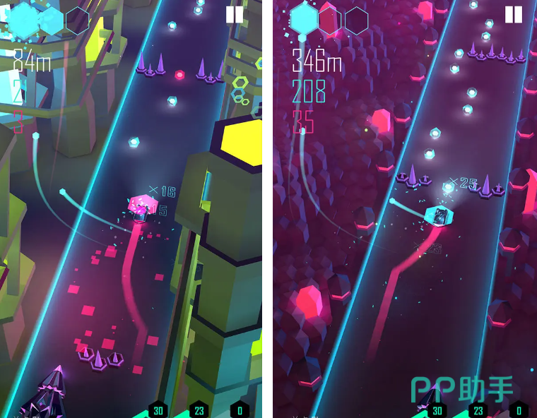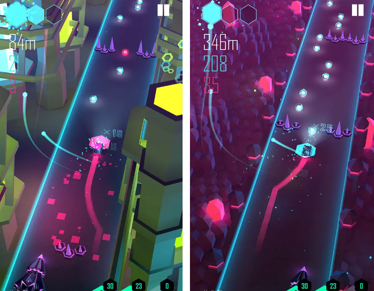 这个游戏以电子音乐为背景,打造了一个节奏感很强的音乐赛车游戏,玩家在游戏中需要操控自己的汽车躲开沿途的障碍物,还需要击败一路上遇到的各种敌人,顺利到达终点。这个游戏为了搭配节奏感很强的电子音乐,把游戏画面也设计得十分精美和炫酷,色彩搭配也很出彩,可以让玩家在游戏过程中感受到梦幻的律动。
