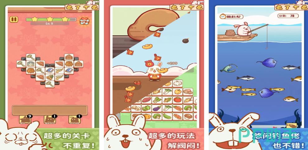 这个游戏可以说是“羊了个羊”的升级版,玩家需要选择图案相同的方块进行消除,每三个相同图片就能进行一次消除,但压在下面的图片需要先把上面的图片消除后才能移动,轻松解压。除了简单的相同图片消除玩法,还开发了很多其他玩法,比如接红包、钓鱼等等,如果玩腻了消除游戏,也可以玩别的小游戏放松放松,转换一下思维。